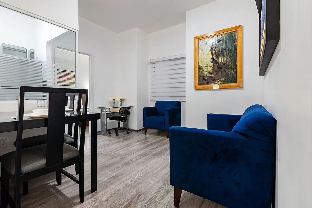 Descubre el lugar perfecto para descansar, trabajar o compartir en Guadalajara. En nuestro hotel, encontrarás suites de 1, 2 y 3 recámaras, totalmente equipadas con sala, comedor y cocina para que te sientas como en casa desde el primer día. Nuestra ubicación es privilegiada, a solo unos minutos de la Expo Guadalajara, el Estadio Akron y del Consulado de Estados Unidos.